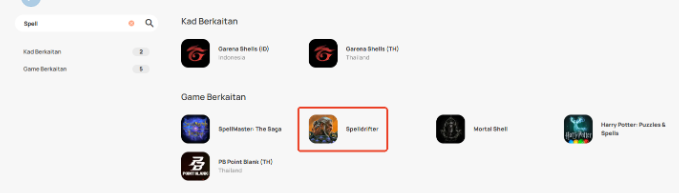 Langkah 1: Log masuk atau daftar di SEAGM, cari "Spell" di menu atas, dan pilih Spelldrifter.
