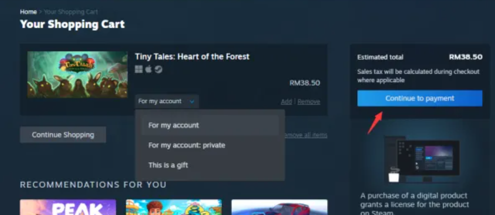 Langkah 9:Pilih sama ada untuk diri sendiri atau untuk rakan. Kemudian, klik pada[Teruskan ke Pembayaran].
