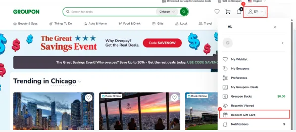 Langkah 7: Untuk menyemak baki anda, pergi ke ikon akaun dan klik "Groupon Bucks."