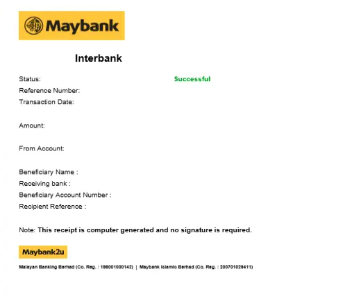 Perlukan bukti pembayaran? Anda boleh mendapatkan resit pembayaran anda dengan mudah melalui Perbankan Dalam Talian Maybank. Dengan hanya beberapa klik, anda boleh melihat, memuat turun dan memaparkan tangkapan skrin butiran transaksi anda.