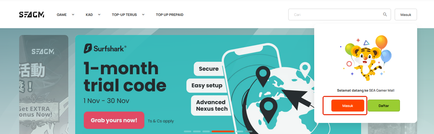 Langkah 1: Layari SEAGM dan pastikan anda berada di laman rasmi untuk mengelakkan penipuan.