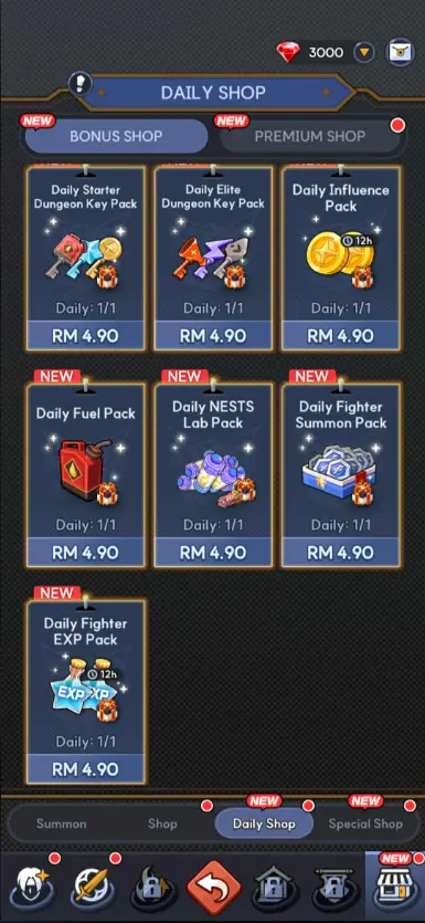 Langkah 2: Pasang dan mulakan aplikasi kemudian ketik ikon Kedai di bahagian bawah sebelah kanan dan pilih jenis pek pilihan anda di bawah bahagian "Daily Shop"