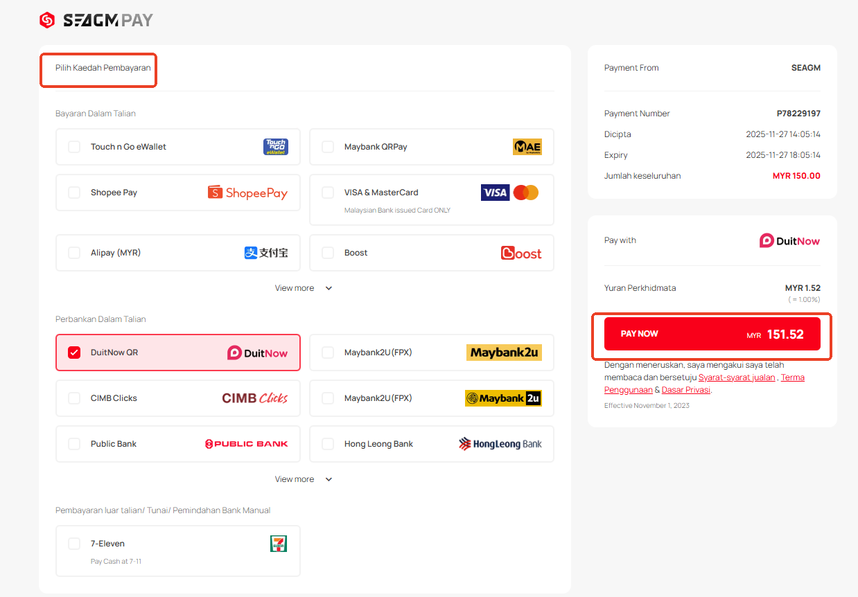 Langkah 4: Pilih kaedah pembayaran yang anda inginkan dan klik "Bayar Sekarang" untuk menyelesaikan pembayaran anda.