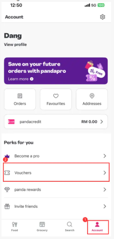 Langkah 4: Dalam bahagian Akaun, pilih “Baucar” daripada senarai pilihan yang tersedia. Di sinilah semua kod diskaun, kod promosi dan kad hadiah diuruskan.