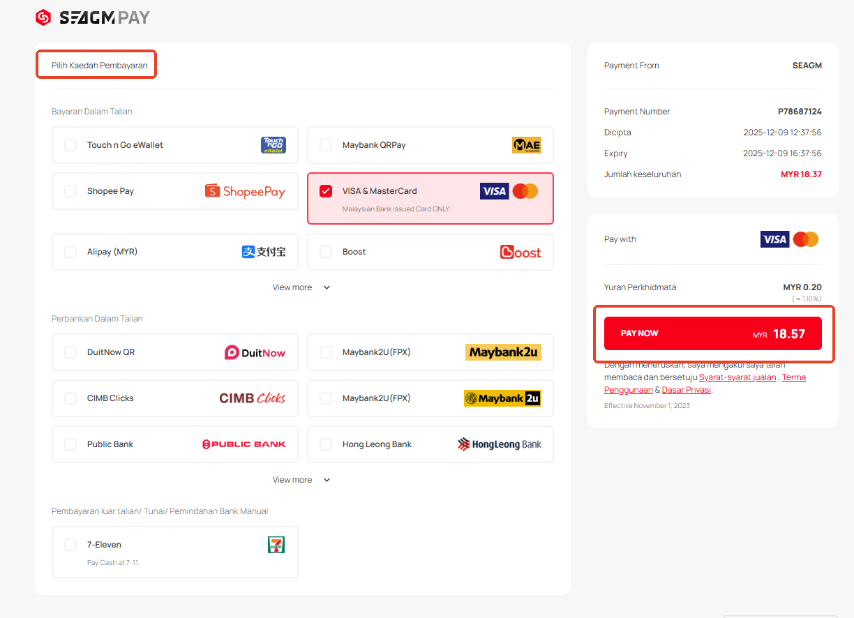 Langkah 4: Pilih kaedah pembayaran yang anda inginkan dan klik "Bayar Sekarang" untuk menyelesaikan pembayaran anda.