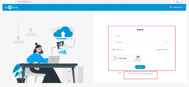 Langkah 2: Lawati laman web rasmi myHPcloud dan teruskan dengan log masuk atau daftar akaun.