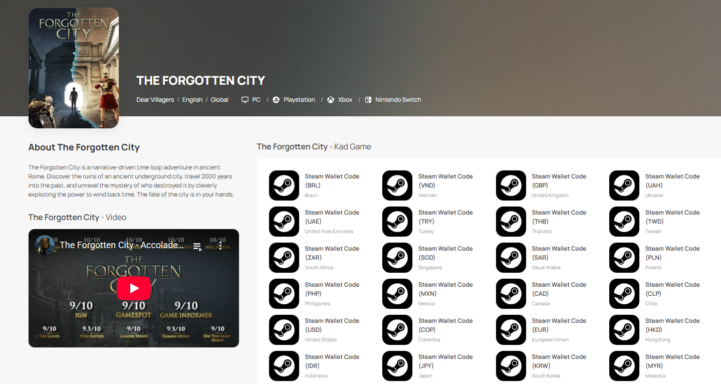 Langkah 1: Log masuk/daftar akaun dalam SEAGM. Pada menu atas, masukkan kata kunci "Forgotten" dan cari. Pilih "The Forgotten City".