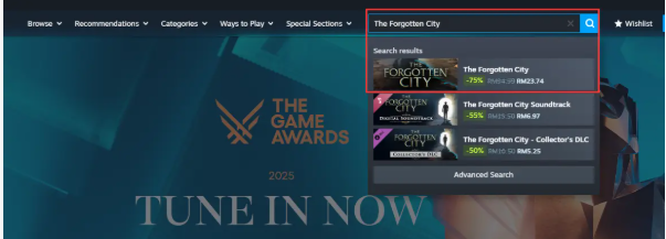 Langkah 6: Kembali ke halaman utama, cari [The Forgotten City], dan pilih permainan setelah dimuat semula ke baki akaun anda.