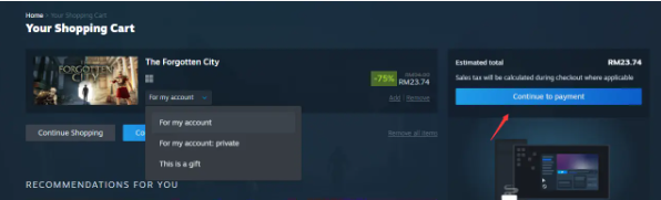 Langkah 9:Pilih sama ada untuk diri sendiri atau untuk rakan. Kemudian, klik pada[Teruskan ke Pembayaran].