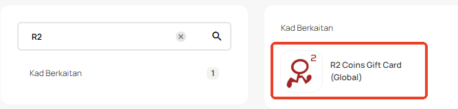 Langkah 1: Log masuk atau daftar untuk akaun dalam SEAGM. Pada menu atas, masukkan kata kunci "R2" dan cari. Pilih "R2 Coins Gift Card [Global]".