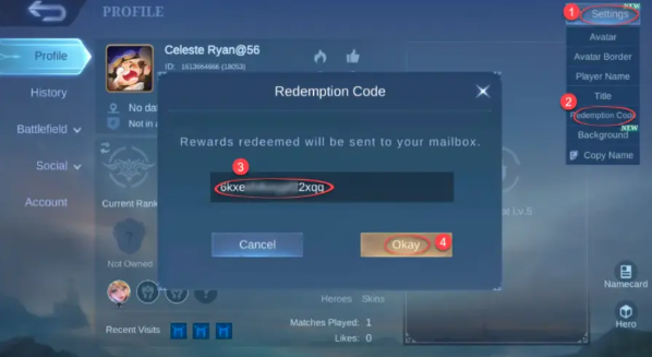 Langkah 4: Pergi ke tab Tetapan dan pilih Kod Penebusan.