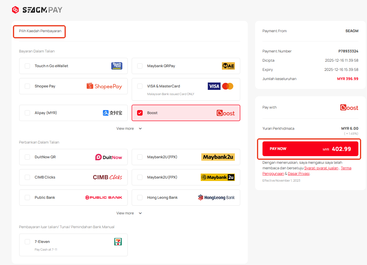 Langkah 4: Pilih kaedah pembayaran yang anda inginkan dan klik "Bayar Sekarang" untuk menyelesaikan pembayaran anda.
