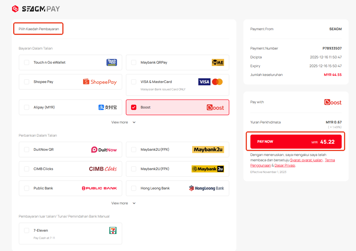 Langkah 5: Pilih kaedah pembayaran yang anda inginkan dan klik "Bayar Sekarang" untuk menyelesaikan pembayaran anda.