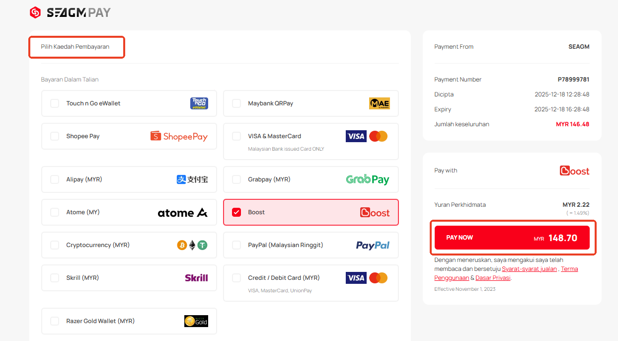 Langkah 4: Pilih kaedah pembayaran yang anda inginkan dan klik "Bayar Sekarang" untuk menyelesaikan pembayaran anda