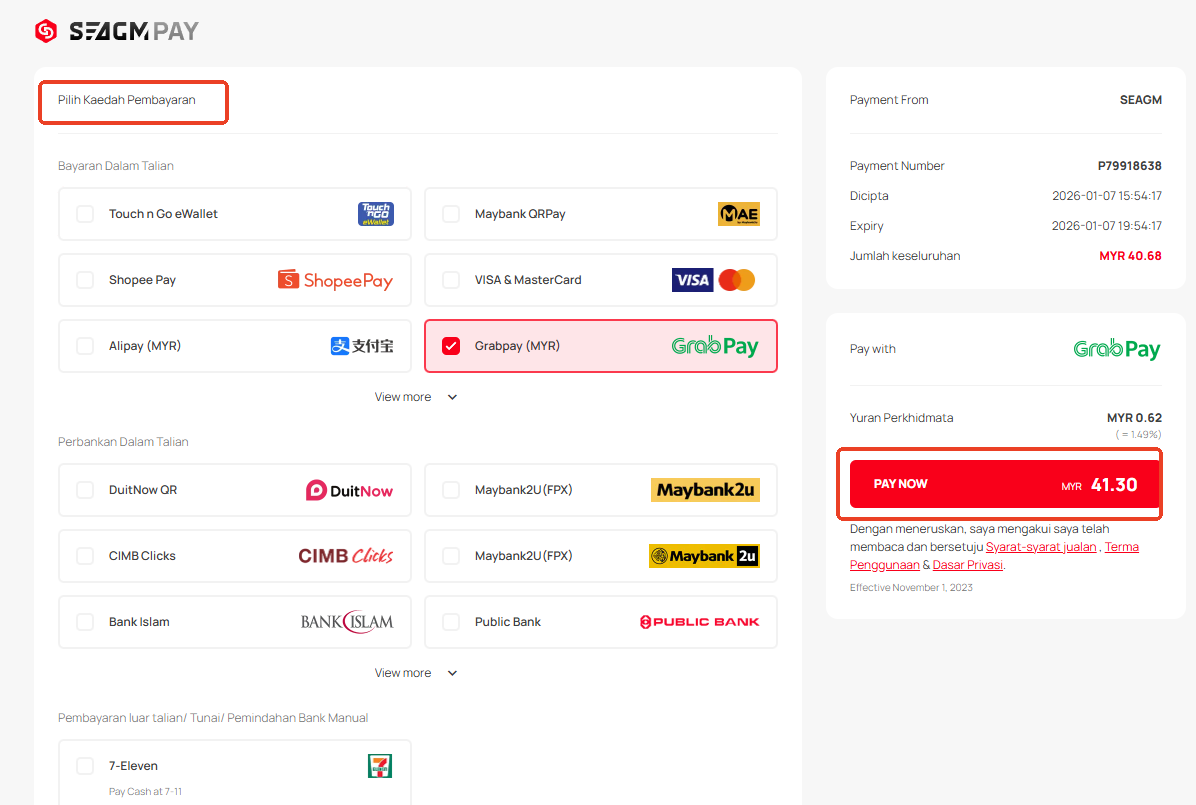 Langkah 4: Pilih kaedah pembayaran yang anda inginkan dan klik "Bayar Sekarang" untuk menyelesaikan pembayaran anda.