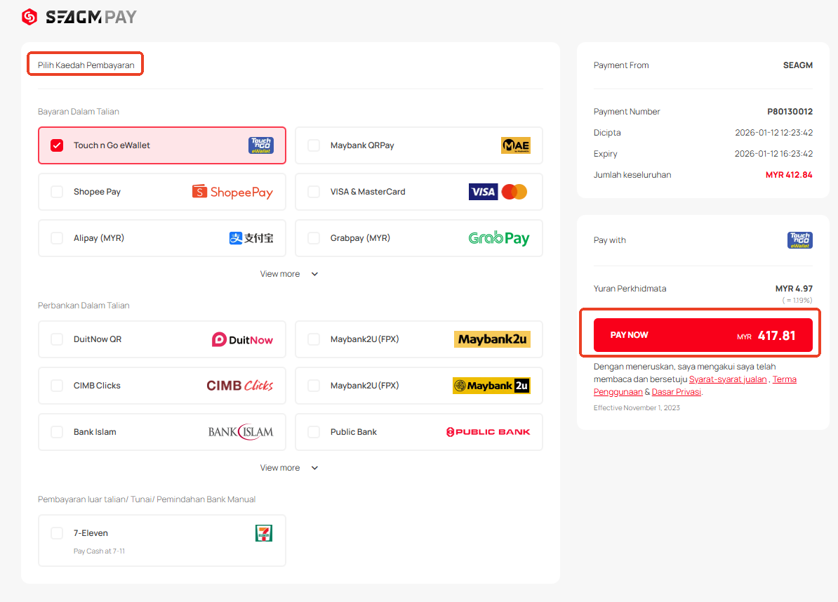Langkah 5: Pilih kaedah pembayaran yang anda inginkan dan klik "Bayar Sekarang" untuk menyelesaikan pembayaran anda.