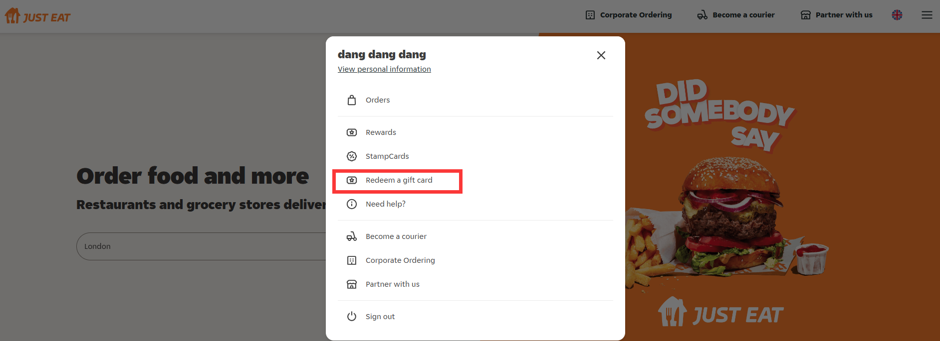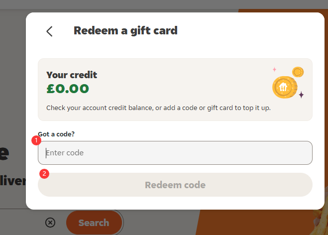 Langkah 5: Di sini, salin dan tampal kod kad hadiah Just Eat yang anda terima daripada SEAGM ke dalam medan input, kemudian ketik “Tebus Kod”.