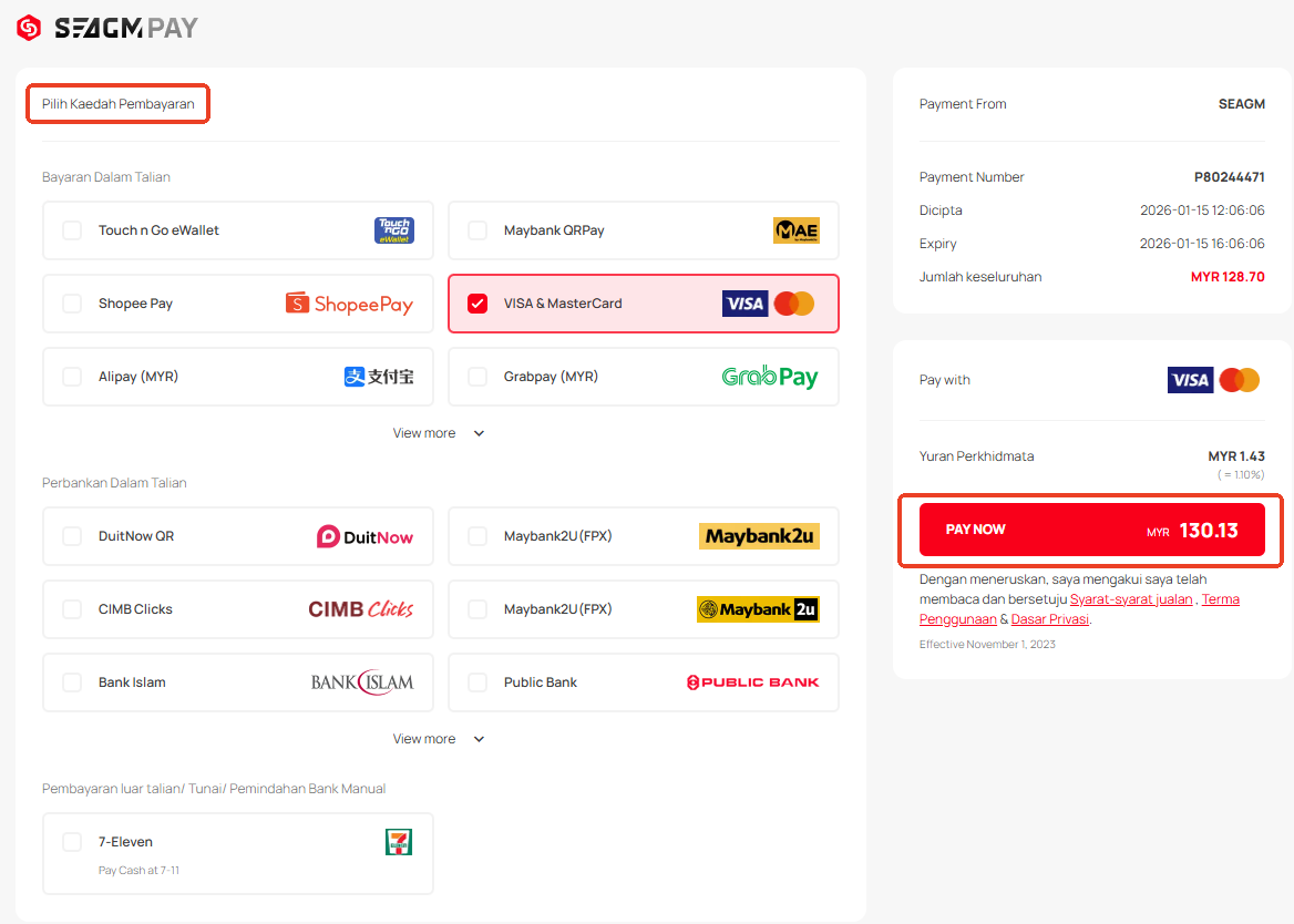 Langkah 5: Pilih kaedah pembayaran yang anda inginkan dan klik "Bayar Sekarang" untuk menyelesaikan pembayaran anda.