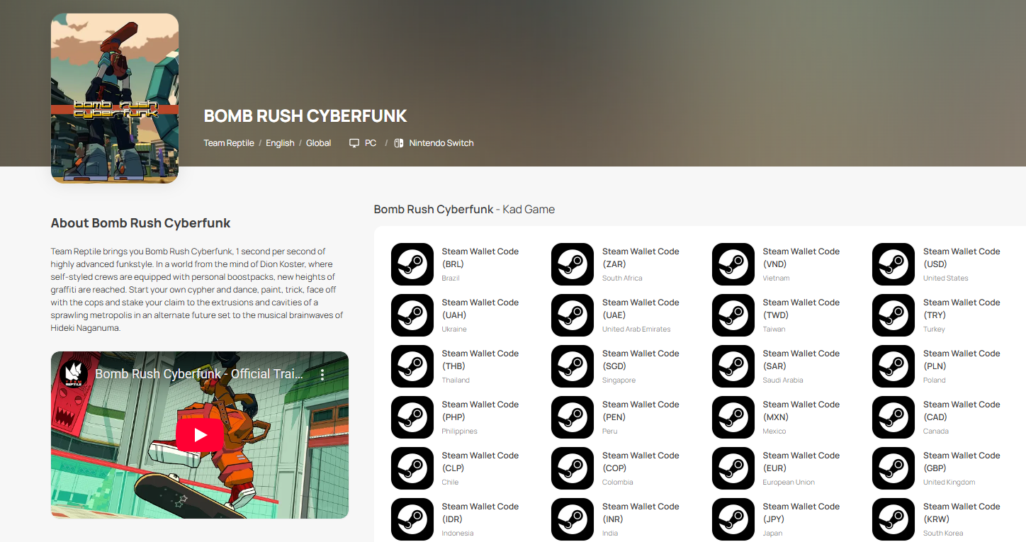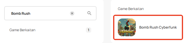 Langkah 1: Log masuk atau daftar untuk akaun dalam SEAGM. Pada menu atas, masukkan kata kunci "Bomb Rush" dan cari. Pilih "Bomb Rush Cyberfunk".