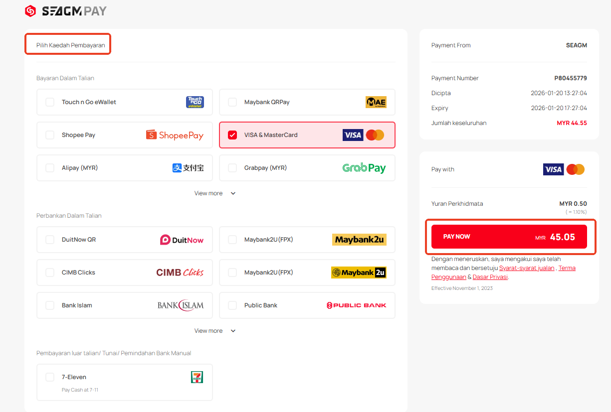 Langkah 5: Pilih kaedah pembayaran yang anda inginkan dan klik "Bayar Sekarang" untuk menyelesaikan pembayaran anda.