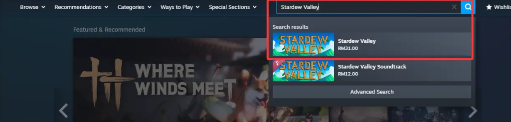 Langkah 6: Kembali ke halaman utama, cari [Stardew Valley], dan pilih permainan setelah dimuat semula ke baki akaun anda