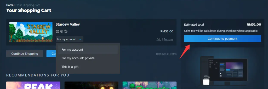 Langkah 9:Pilih sama ada untuk diri sendiri atau untuk rakan. Kemudian, klik pada[Teruskan ke Pembayaran].