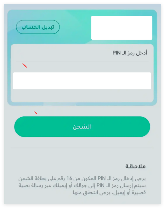 Langkah 3: Masukkan kod pin yang dibeli daripada SEAGM dan klik pada [شحن].
