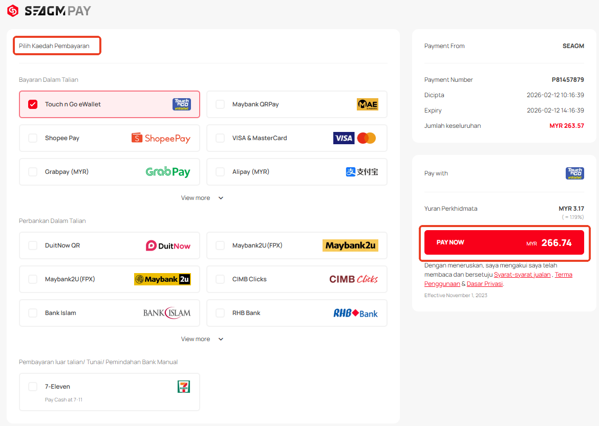 Langkah 4: Pilih kaedah pembayaran yang anda inginkan dan klik "Bayar Sekarang" untuk menyelesaikan pembayaran anda.