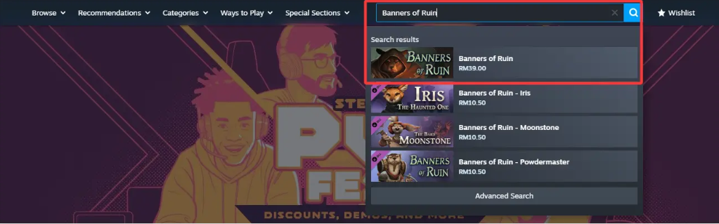 Langkah 6: Kembali ke halaman utama, cari [Banners of Ruin], dan pilih permainan setelah dimuat semula ke baki akaun anda.