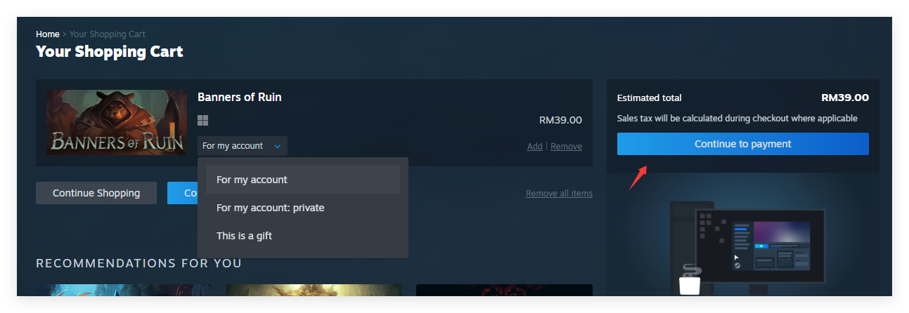 Langkah 9:Pilih sama ada untuk diri sendiri atau untuk rakan. Kemudian, klik pada[Teruskan ke Pembayaran].