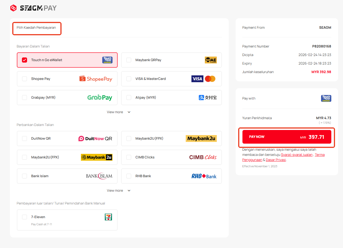 Langkah 4: Sila sahkan jumlah dan kuantiti yang dipilih kemudian klik "Bayar Sekarang" setelah disahkan.