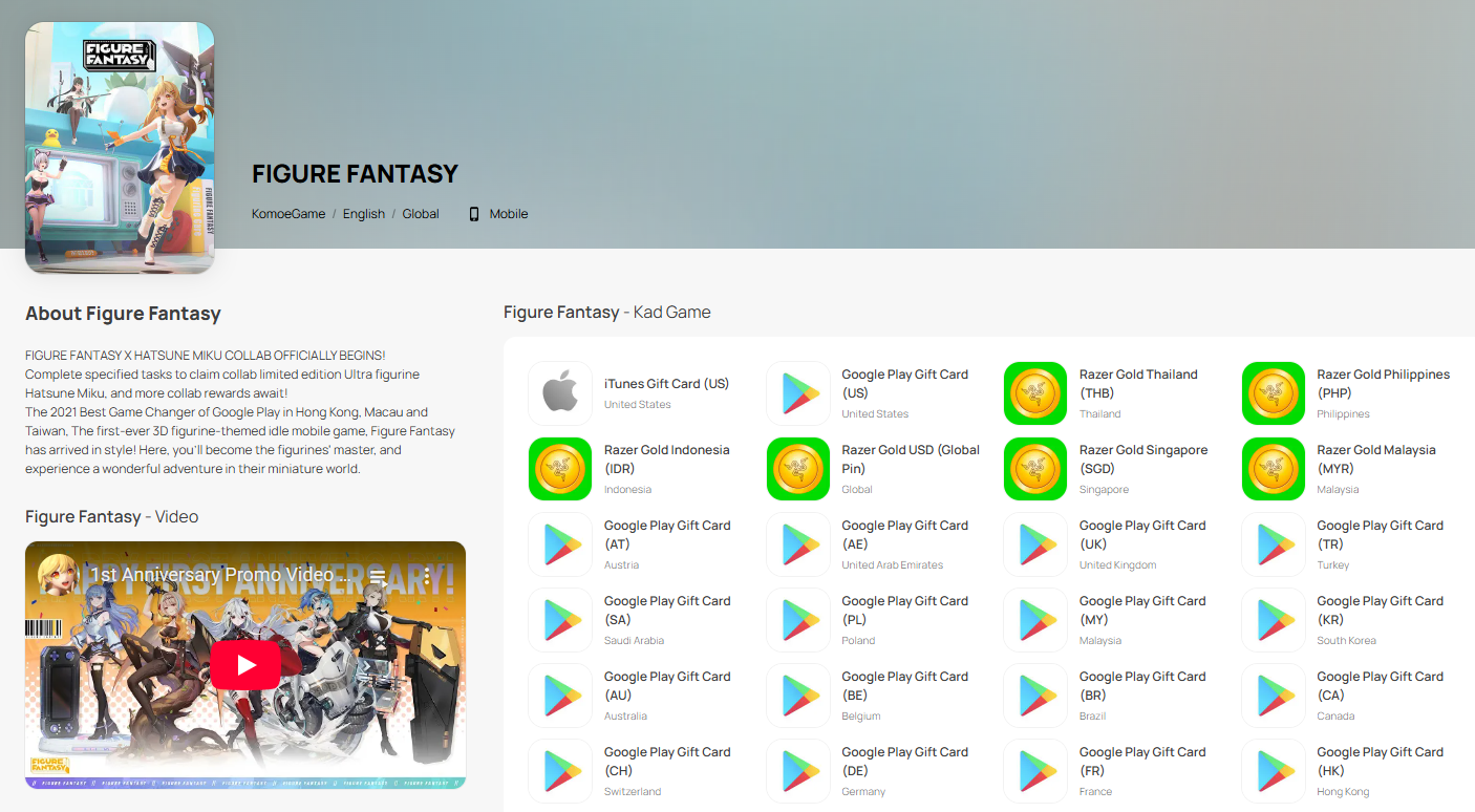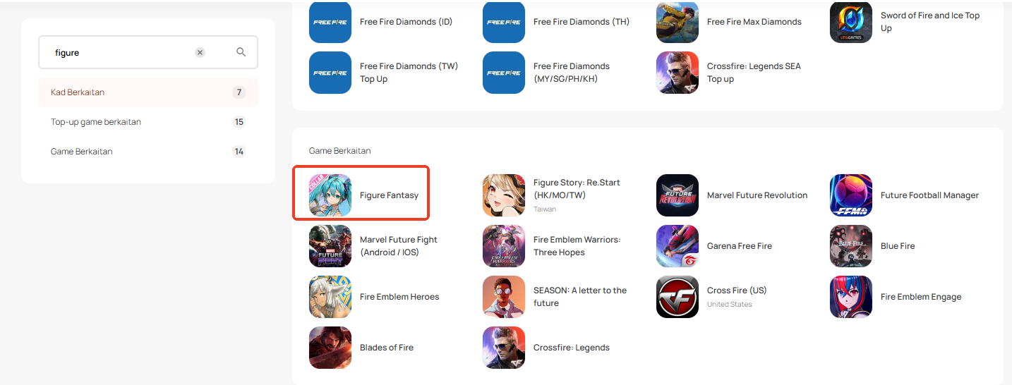 Langkah 1: Log masuk atau daftar untuk akaun dalam SEAGM. Pada menu atas, masukkan kata kunci "Figure" dan cari. Pilih "Figure Fantasy".