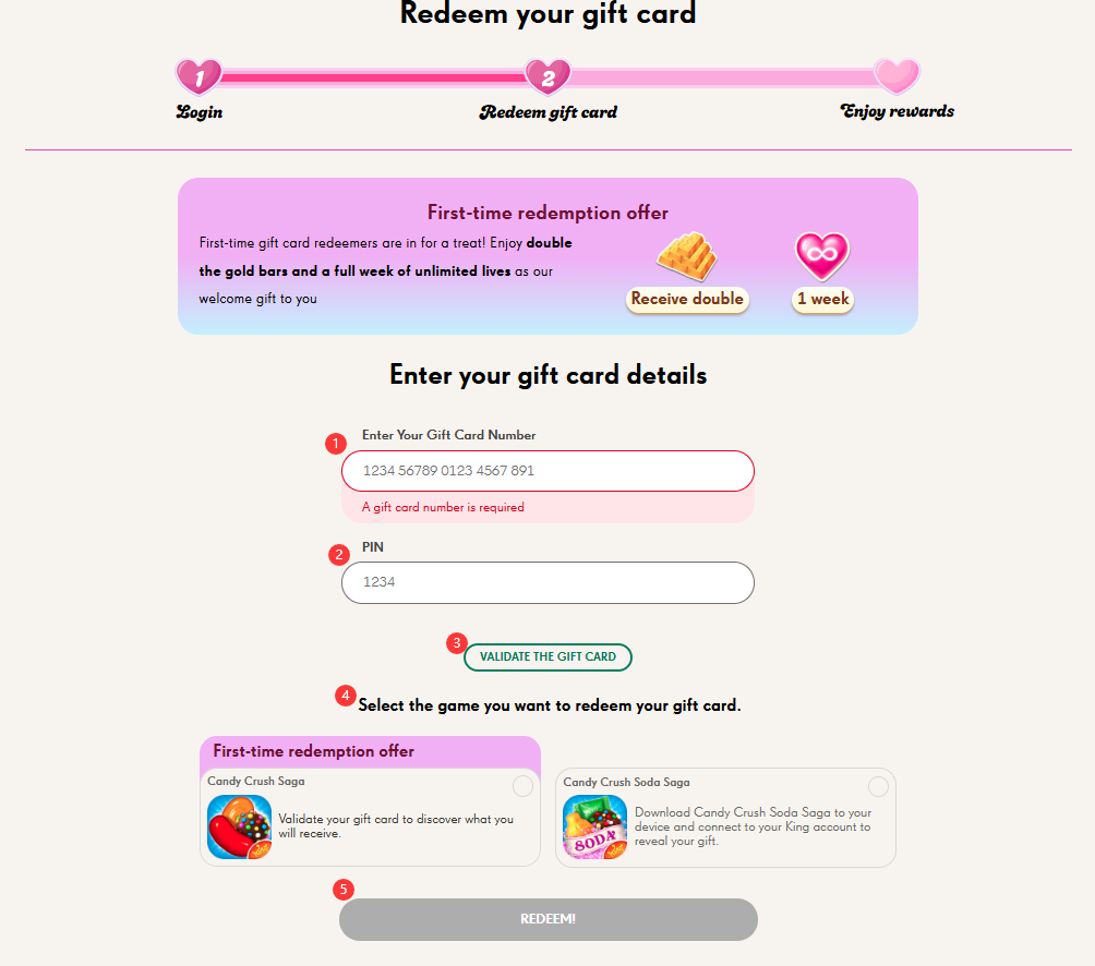 - The gift card value can be used only once in Candy Crush Saga or Candy Crush Soda Saga.