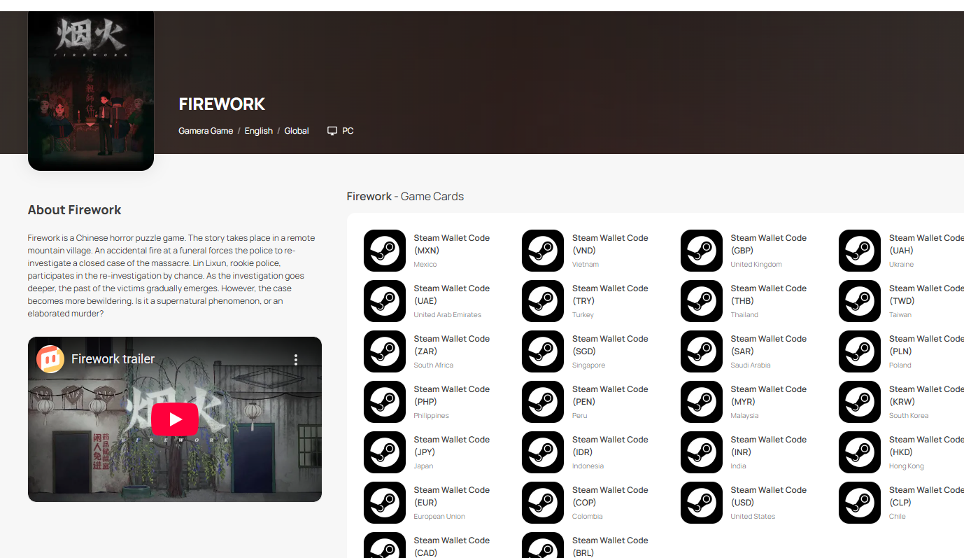 Firework is a Chinese horror puzzle game. The story takes place in a remote mountain village. An accidental fire at a funeral forces the police to re-investigate a closed case of the massacre. Lin Lixun, a rookie police officer, participates in the re-investigation by chance. As the investigation goes deeper, the past of the victims gradually emerges. However, the case becomes more bewildering. Is it a supernatural phenomenon or an elaborate murder?