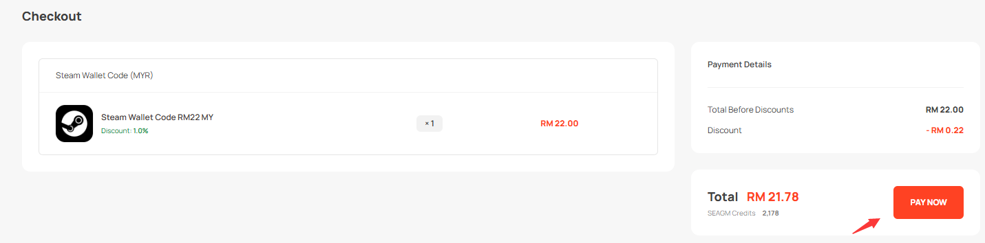- The Steam Wallet Code sold in SEAGM was a region-currency-locked card. Steam users can only redeem it according to their original currency settings.