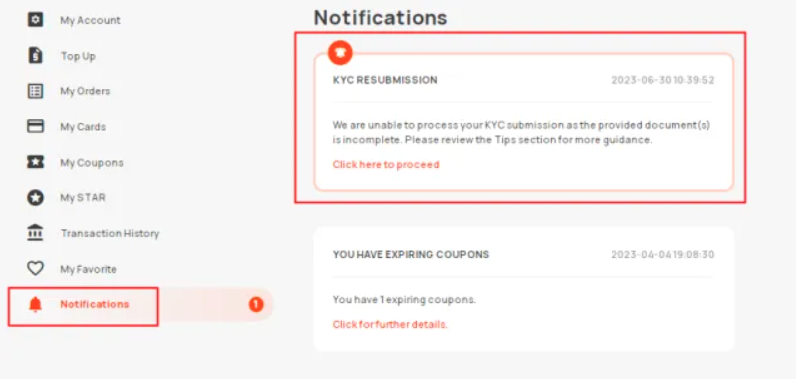 [i] 对于不符合我们要求的验证,您将收到“KYC Resubmission”的通知:
