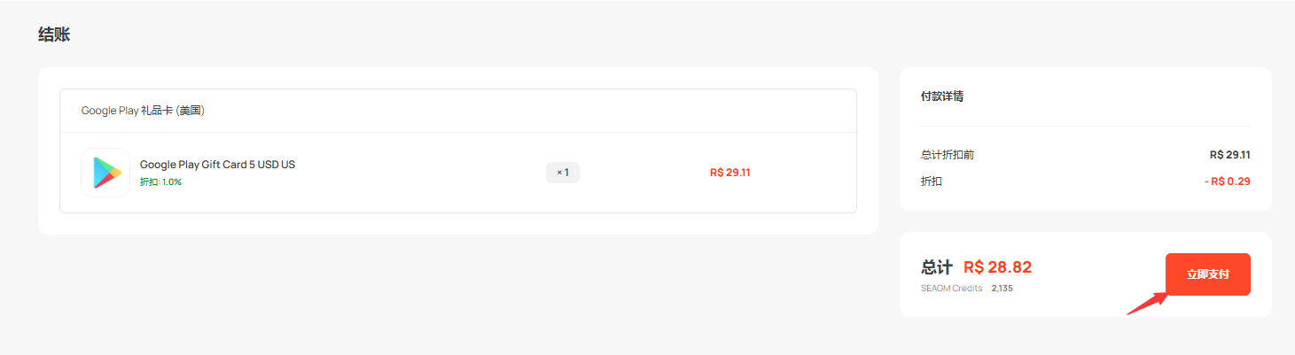 第 1 步:在 SEAGM 中选择您的产品,然后单击“PayNow”以转到结帐页面。