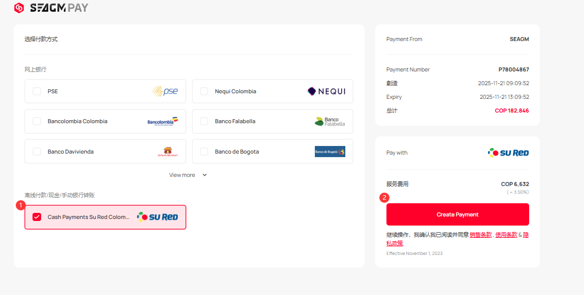 注意:以下付款指南不适用于哥伦比亚现金 OTC 付款方式。