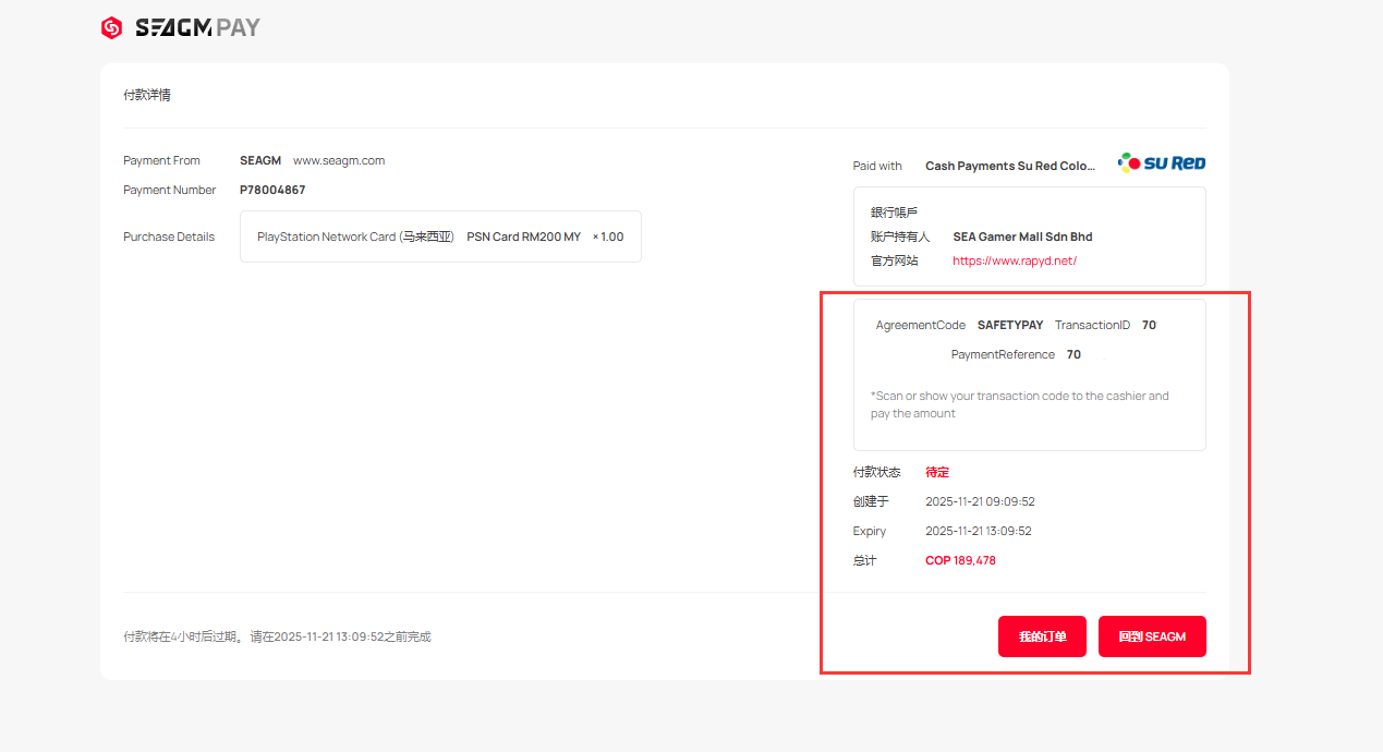 第 4 步:交易完成后,您的订单将自动进行。 请随身携带收据以备日后参考。 您可以在 SEAGM 个人资料的“我的订单”部分查看您的订单状态。