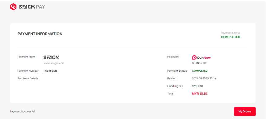 步骤 1: 照常在 SEAGM 完成购买。