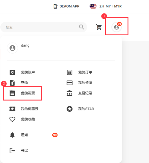 步骤 2:在您的 SEAGM 用户帐户中,单击 [我的发票]。