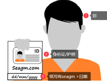 第 6 步:将您的身份证/护照连同写好的纸条一起放在脸旁边,如下图所示,然后按下拍照按钮。