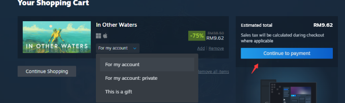 步骤9:选择为自己还是朋友。然后,单击[继续付款/Continue to Payment]。