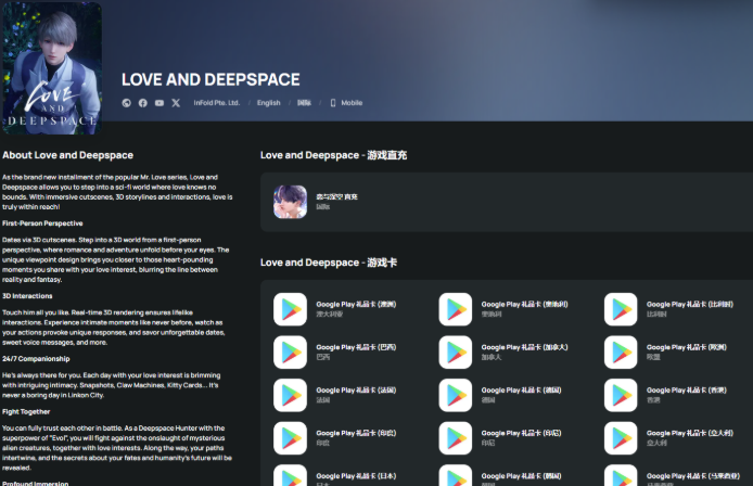 第 1 步:登录或注册 SEAGM 账号 ,在顶部菜单输入关键词 “Love” 进行搜索,选择 “Love and Deepspace”。