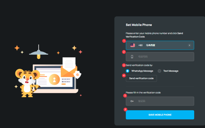 - 输入收到的验证码,最后点击 [save mobile phone]。