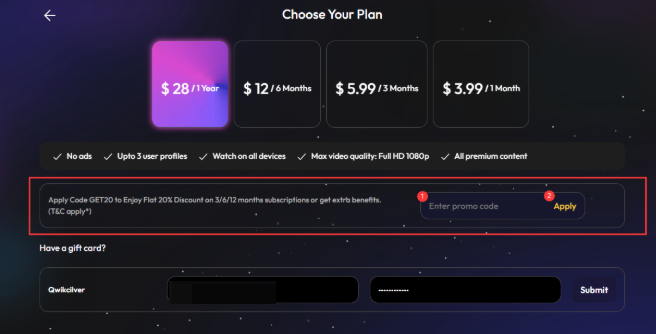 步骤5:在【输入优惠码/Enter promo code】栏输入您从SEAGM购买的PIN码,然后点击【应用/Apply】。