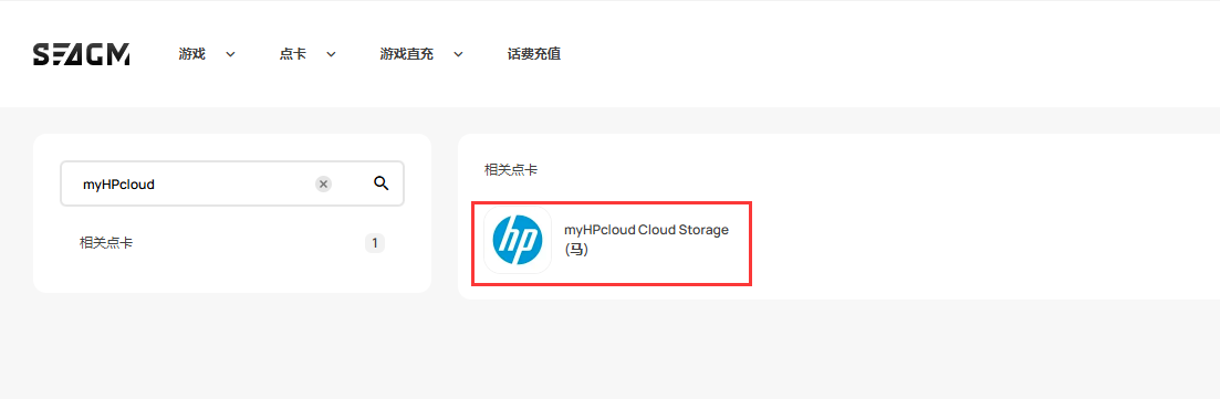 第 1 步:登录/注册SEAGM帐户。 在顶部菜单中输入关键字“myHPcloud”并搜索。 选择“myHPcloud Cloud Storage (马)"。