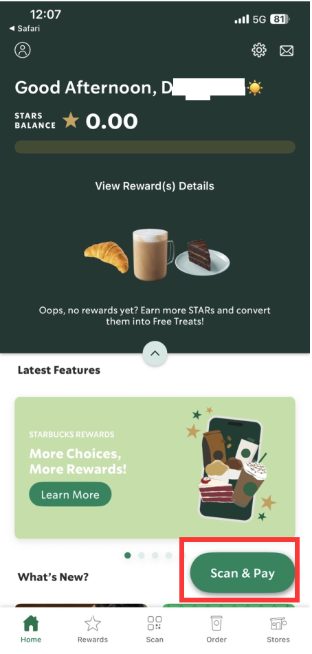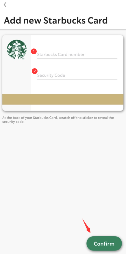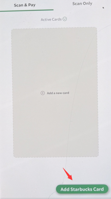 步骤 3:点击“Scan & Pay” 。然后,选择 “ADD CARD”。 输入卡号(来自您的兑换链接中的 Code)和安全码(来自兑换链接中的 Activation PIN)。