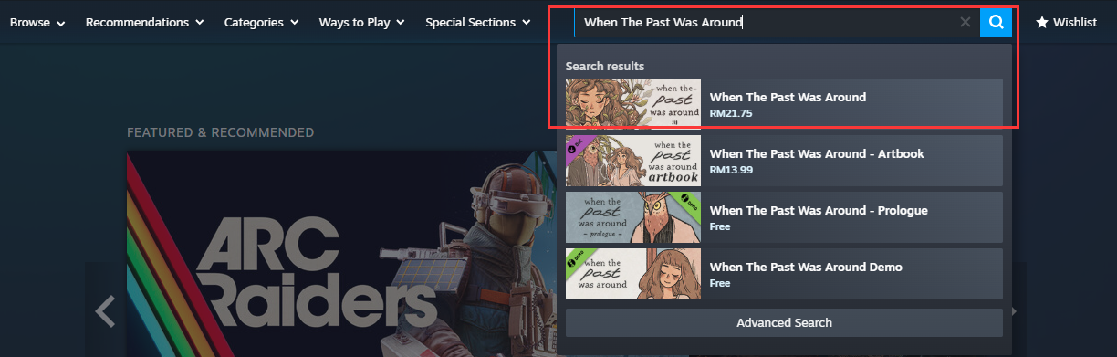 步骤6:成功充值到您的账户余额后,返回主页,搜索[When The Past Was Around]并选择游戏。