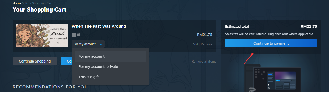 步骤9:选择为自己还是朋友。然后,单击[继续付款/Continue to Payment]。